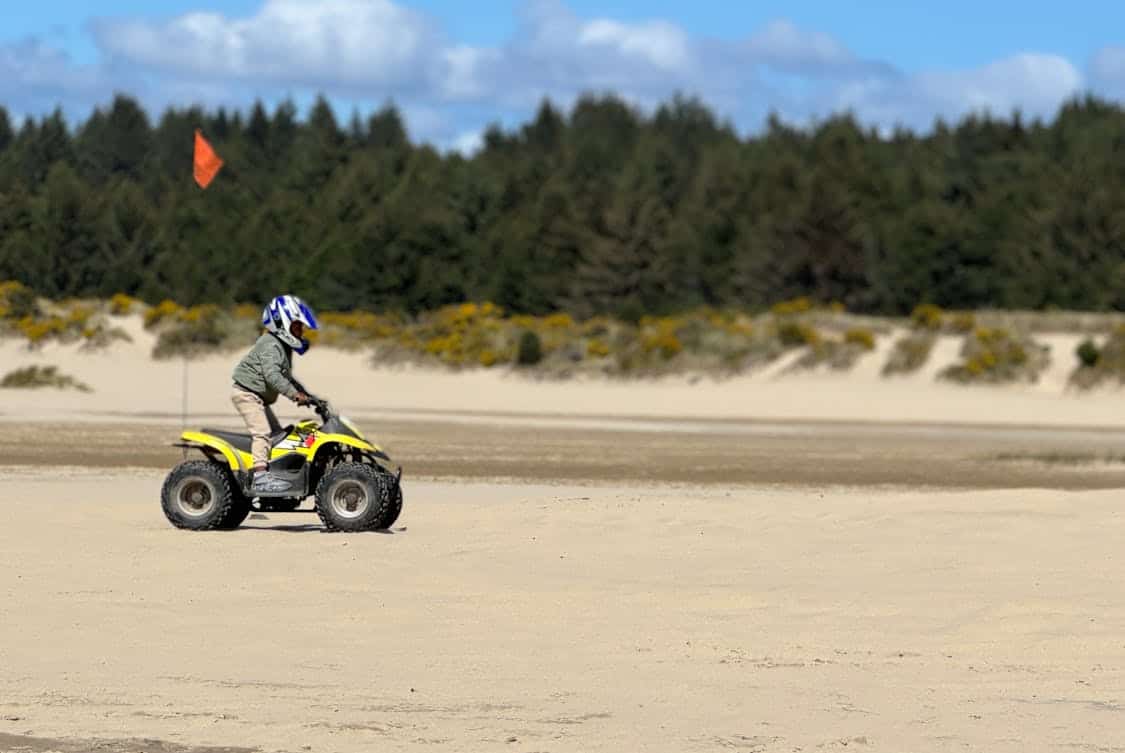 a man riding an atv on sand dessert