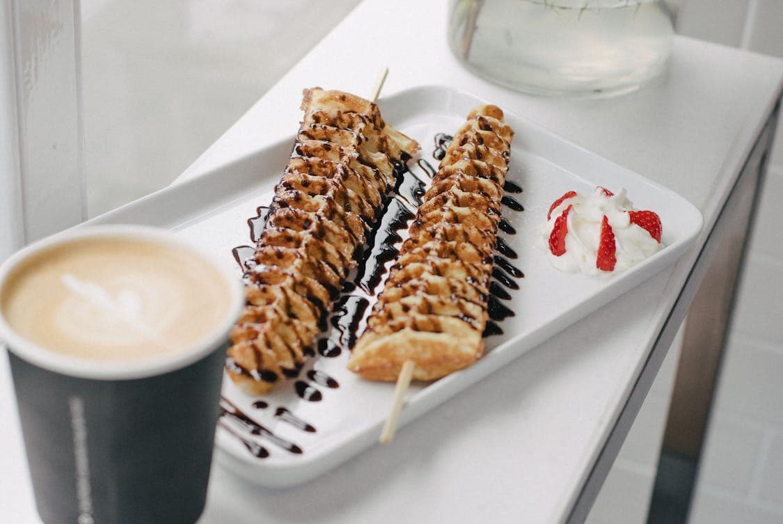 waffles on stick with chocolate toppings